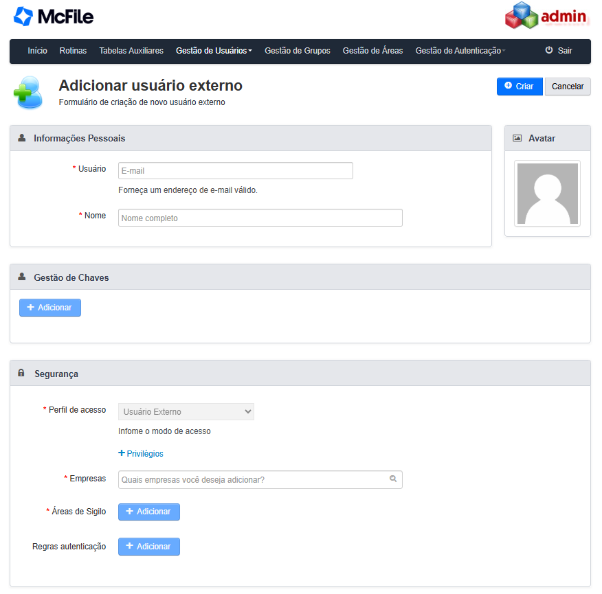 A gestão dos usuários é exclusiva para usuários com permissões de Administrador.