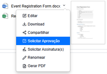 1. No arquivo desejado, selecione a opção Solicitar Aprovação.