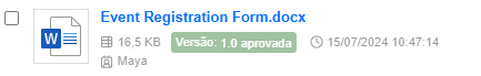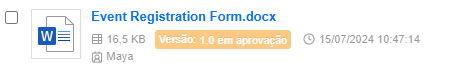 Após o envio da solicitação, o arquivo exibirá um selo indicando que está "em aprovação".