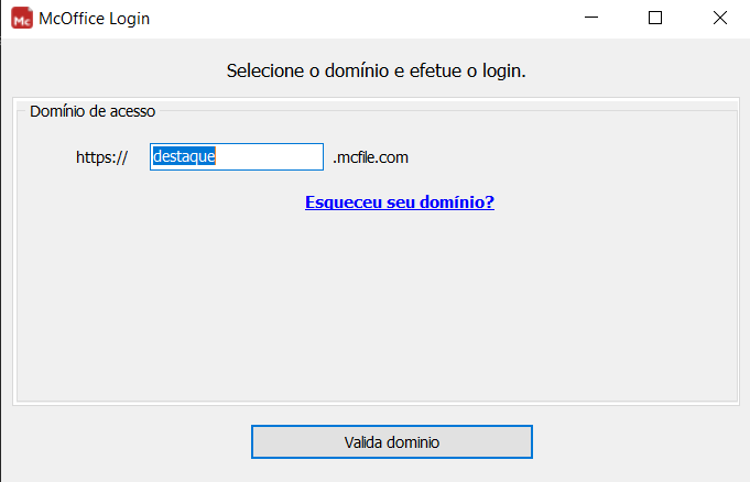 2. Escreva o seu domínio McFile e clique em validar domínio.