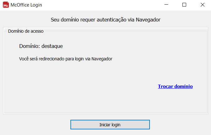 3. Caso o domínio esteja correto será direcionado para esta tela, basta clicar em iniciar login: