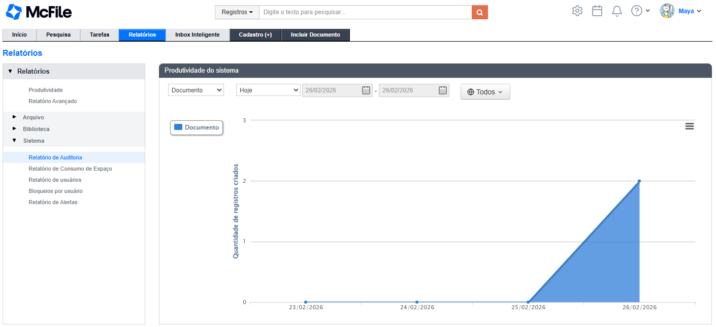 O Relatório de Auditoria é uma ferramenta essencial para o monitoramento e a conferência das ações realizadas dentro da McFile. Ele oferece uma visão detalhada das atividades, permitindo que o usuário aplique filtros específicos para garantir a transparência, a segurança e o controle das operações executadas no sistema.