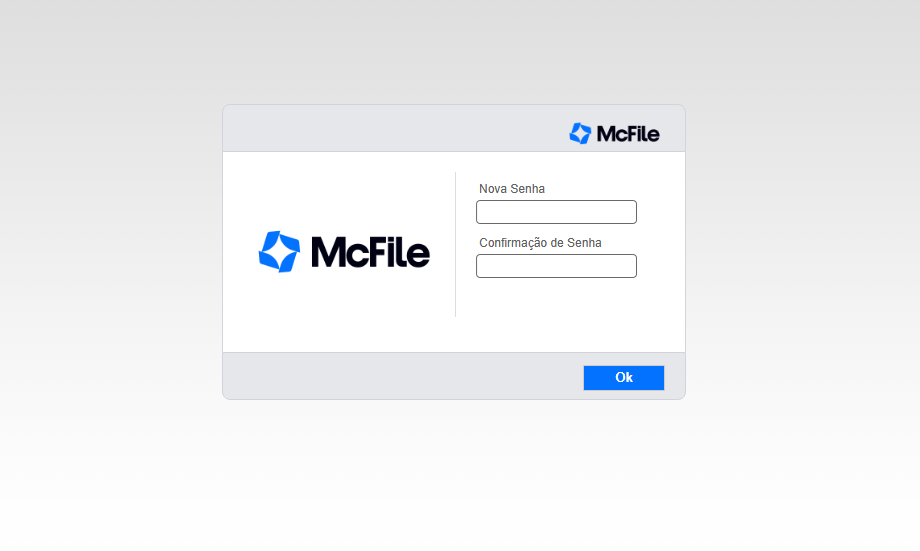 Preencha os campos com a nova senha e clique no botão "Ok".