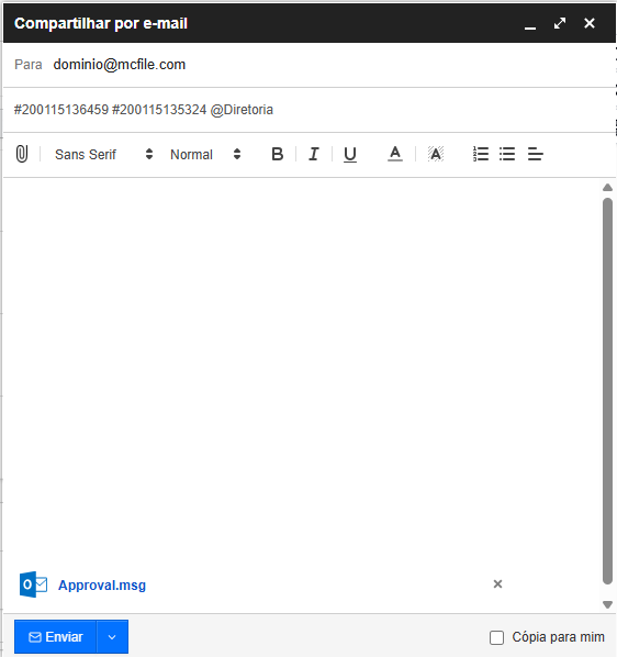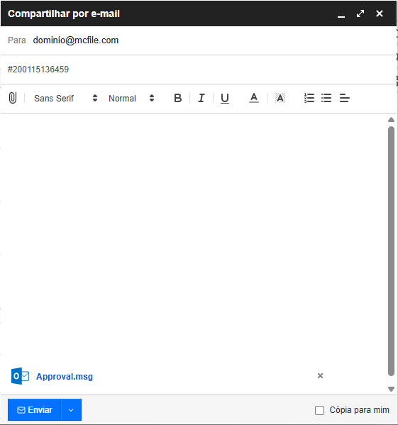 Salvando e-mail através do envio para domínio@mcfile.com (Endereço disponibilizado no e-mail de Boas-vindas a McFile):